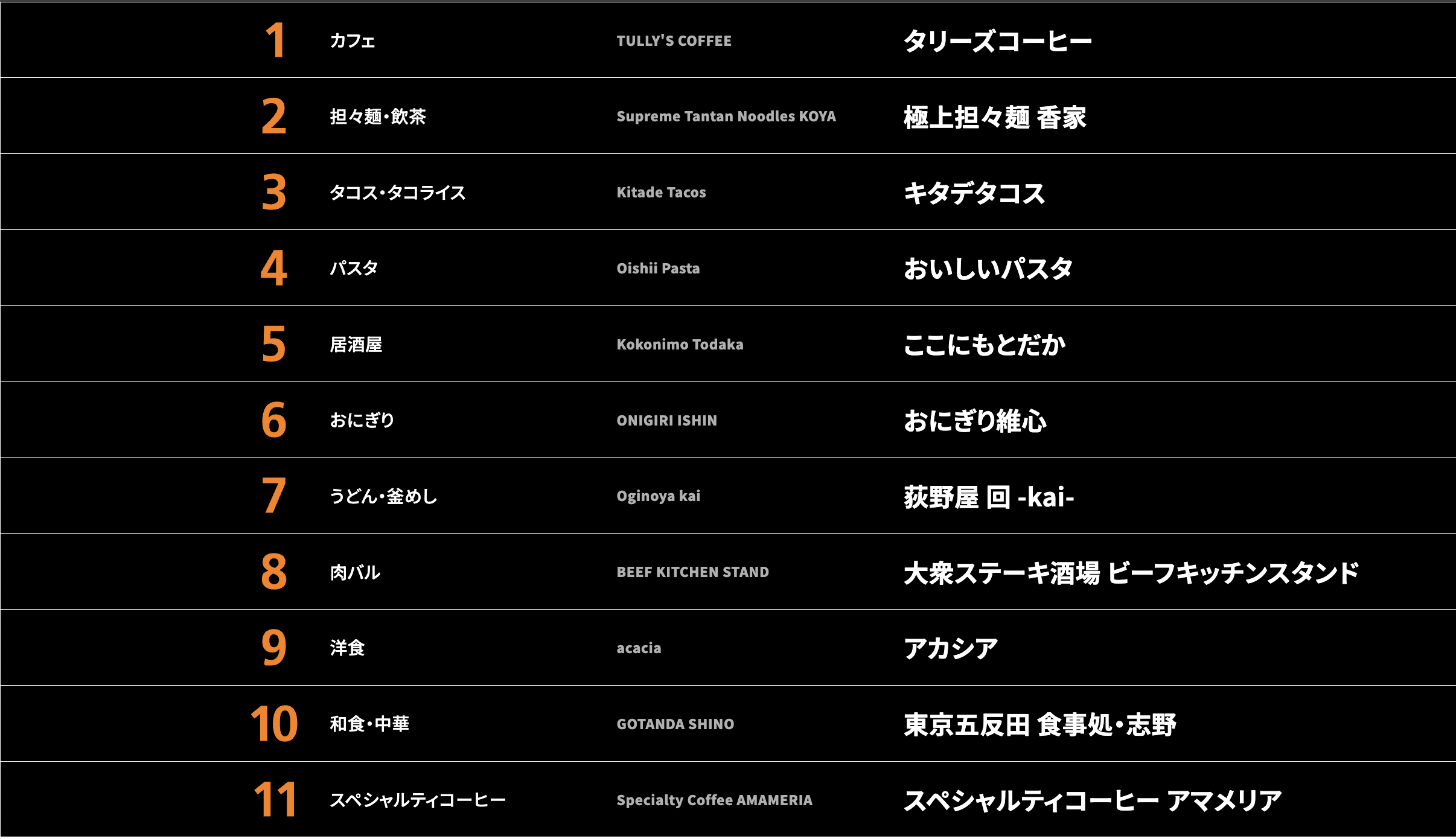 11:00~21:00L.O. 五反田食堂は23:00クローズ |